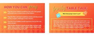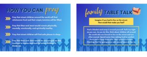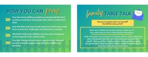 ENGAGE – Engage with family and friends about street children around the world and the work Stan and Janet are doing. Use the Family Table Talk topics on the back of each week's prayer card!
