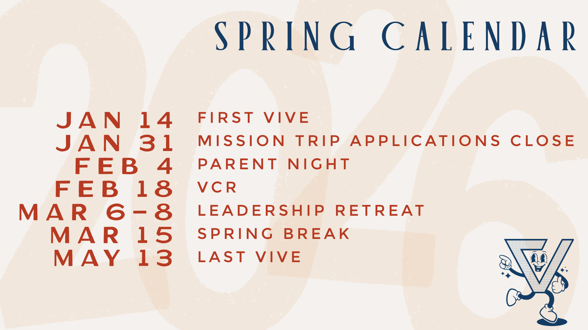 With the new year we have a new calendar! We are so excited to be back with all of our people every week! Click the link below to our spring calendar!
